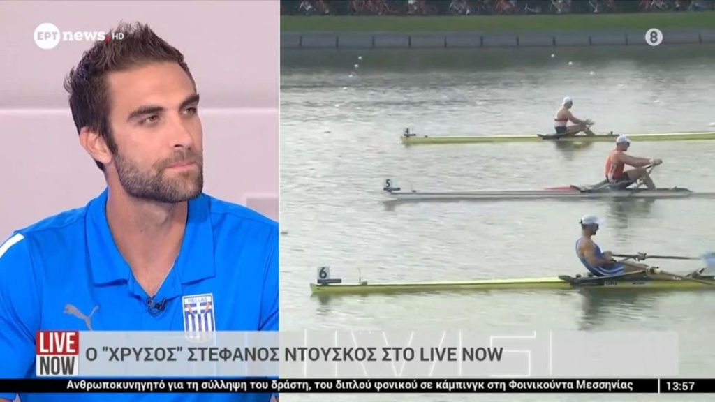 Ο "χρυσός" Στέφανος Ντούσκος καλεσμένος στην ΕΡΤ και στην εκπομπή "Live Now", με τα δύο μετάλλια που κέρδισε στο παγκόσμιο πρωτάθλημα κωπηλασίας στην Σαγκάη της Κίνας.
