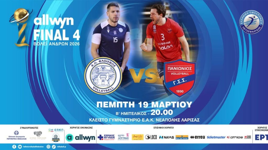 Φλοίσβος Παλαιού Φαλήρου και Πανιώνιος αναμετρώνται στον δεύτερο ημιτελικό του Final 4 του Κυπέλλου βόλεϊ ανδρών που διεξάγεται στη Λάρισα (19/03, 20:00, ΕΡΤ2 ΣΠΟΡ).