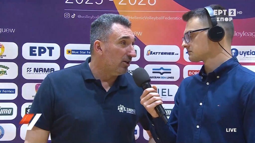 Ο προπονητής του ΖΑΟΝ μίλησε στη Δημόσια Τηλεόραση μετά το φινάλε του τρίτου τελικού της Volley League γυναικών κόντρα στον Παναθηναϊκό στο "Κ.Γ. Μετς".
