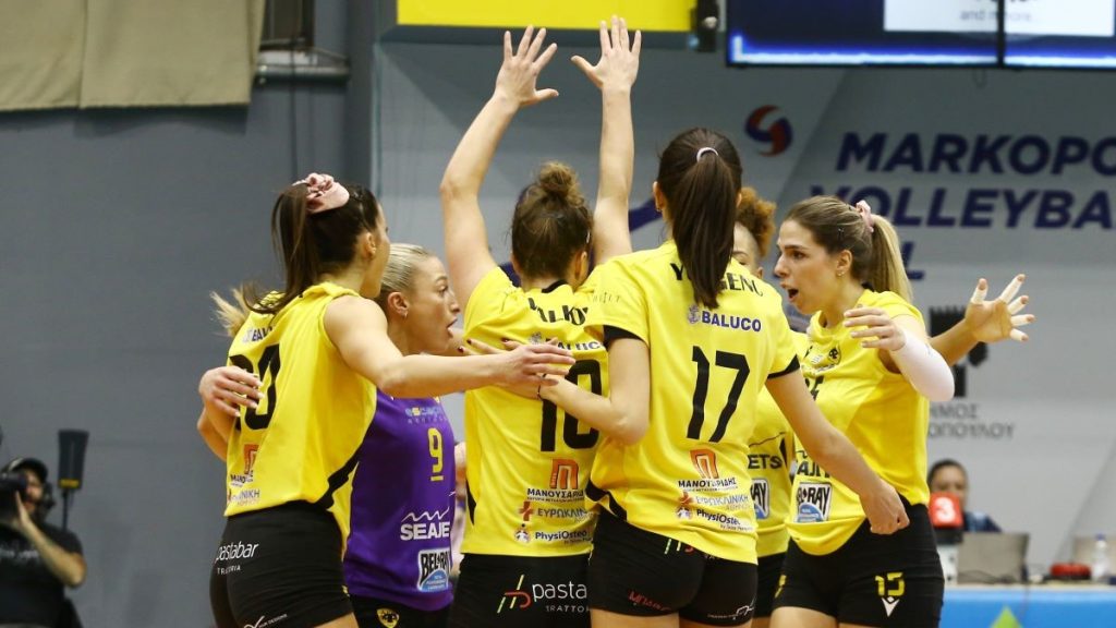 Το Μαρκόπουλο προηγήθηκε στο πρώτο σετ με 7-3 και 10-7, αλλά η ΑΕΚ αντέδρασε και πήρε το προβάδισμα με 12-13. Οι γηπεδούχες ισοφάρισαν, αλλά ένα σερί 0-7 μετέτρεψε το σκορ σε 13-20, με την ΑΕΚ να κατακτά το σετ με 16-25.