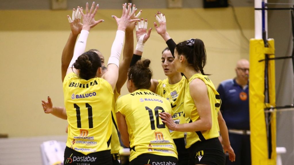 Στο πρώτο σετ με μπλοκ της Κυπαρίσση η ΑΕΚ προηγήθηκε νωρίς με 5-1.Με τα σερβίς της Τάουμπνερ ο ΠΑΟΚ πέρασε μπροστά με 8-10 και από εκείνο το σημείο και μετά οι δύο ομάδες πήγαιναν μαζί στο σκορ μέχρι το 21-21. Η Κυπαρίση έδωσε δύο σετ μπολ στην ομάδα της (24-22), η Ντιουφ έχασε τη κόντρα επίθεση (24-23) αλλά η ίδια έδωσε το σετ στην ΑΕΚ για το 25-23.
