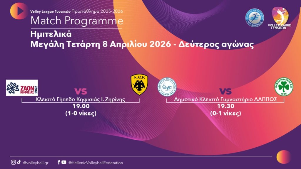 Μ. Τετάρτη 8 Απριλίου 2026 – Δεύτερος αγώνας