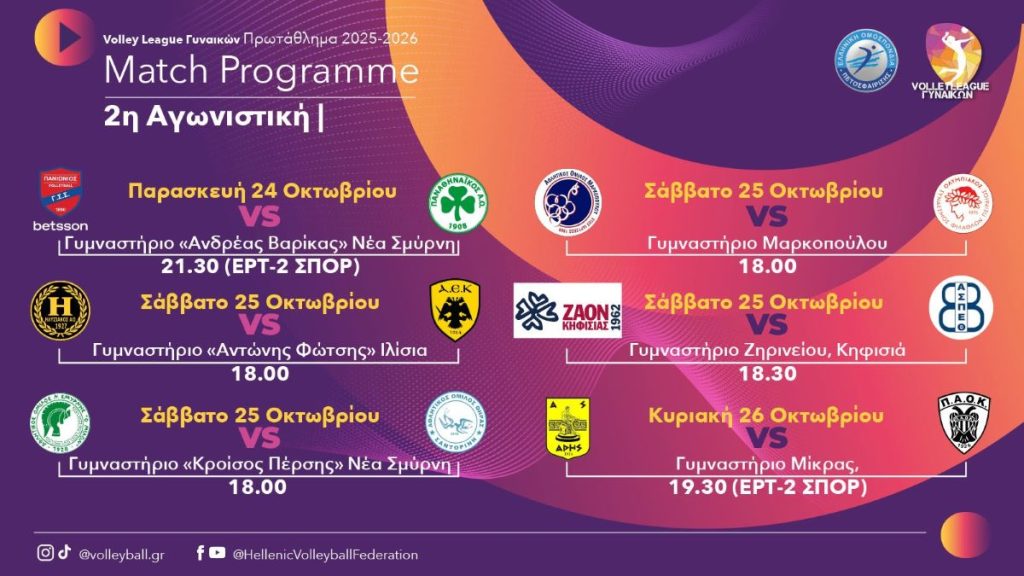 Γυμναστήριο «Ανδρέας Βαρίκας» Νέα Σμύρνη (χωρίς θεατές):, 21.30 (ΕΡΤ-2 ΣΠΟΡ): Πανιώνιος Betsson – Παναθηναϊκός Α.Ο.