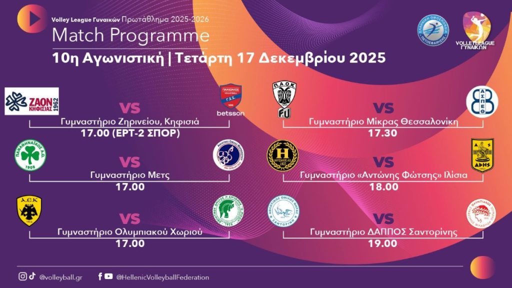 Αναλυτικά το πρόγραμμα της 17ης αγωνιστικής: