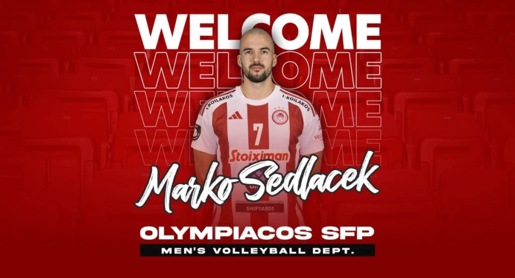 «Ο ΟΛΥΜΠΙΑΚΟΣ Σ.Φ.Π. ανακοινώνει την έναρξη της συνεργασίας του με τον Μάρκο Σέντλατσεκ. Ο διεθνής Κροάτης ακραίος (29/7/1996, 2,02μ.) υπέγραψε το νέο του συμβόλαιο και εντάσσεται στο ρόστερ της ομάδας βόλεϊ Ανδρών του συλλόγου.