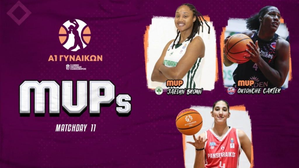 Τον τίτλο της MVP της 11ης Αγωνιστικής μοιράζονται η Σα Κάρτερ του Παναθλητικού και η Τζάελιν Μπράουν του Παναθηναϊκού, ενώ MVP Next Gen και μάλιστα back to back αναδείχθηκε η Διαμάντω Αλεξιά.
