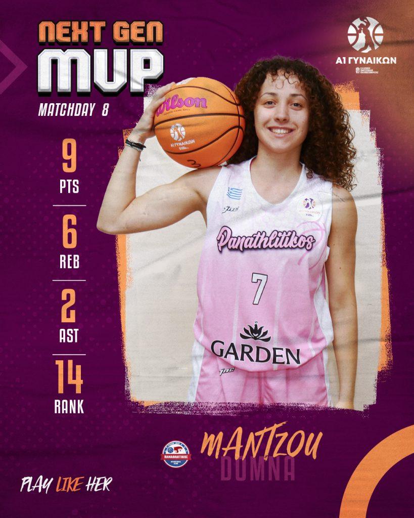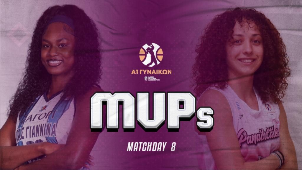 Από το παιχνίδι ΠΑΣ Γιάννινα – Παναθλητικός που είχε συναρπαστική εξέλιξη αναδείχθηκαν οι κορυφαίες της 8ης Αγωνιστικής στο πρωτάθλημα της Α1 Γυναικών. H Αμάνι Σίνγκλετον του ΠΑΣ Γιάννινα αναδείχθηκε MVP και η Δόμνα Μάντζου του Παναθλητικού, κέρδισε τον τίτλο της MVP Next Gen.