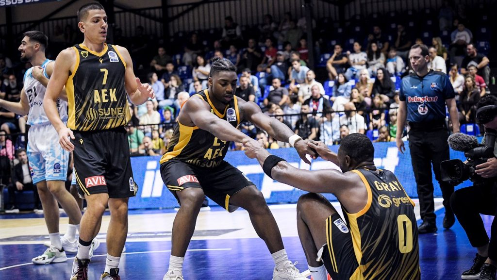 Σε ένα ματς που ο Γκάουντλοκ αποχώρησε τραυματίας και ο Σίλβα αποβλήθηκε για κουτουλιά σε αντίπαλο, η ΑΕΚ άντεξε σε ένα δραματικό φινάλε και πήρε τη νίκη (87-85) στη Ρόδο για την πρεμιέρα της GBL, παρ' όλο που μέσα σε πέντε λεπτά βρέθηκε από το +12 στο -4, κατά τη διάρκεια της τελευταίας περιόδου.