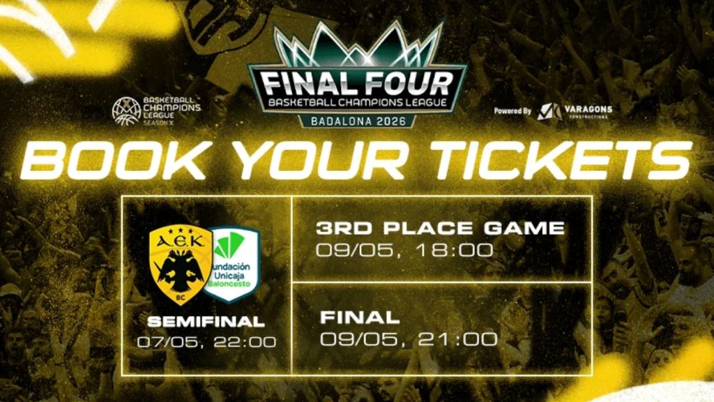 «Η ΑΕΚ ΒC ενημερώνει, ότι συνεχίζεται η ηλεκτρονική διάθεση εισιτηρίων για το F4 του BCL 2025-2026, οι αγώνες του οποίου θα διεξαχθούν στο Palau Municipal d’Esports de Badalona.