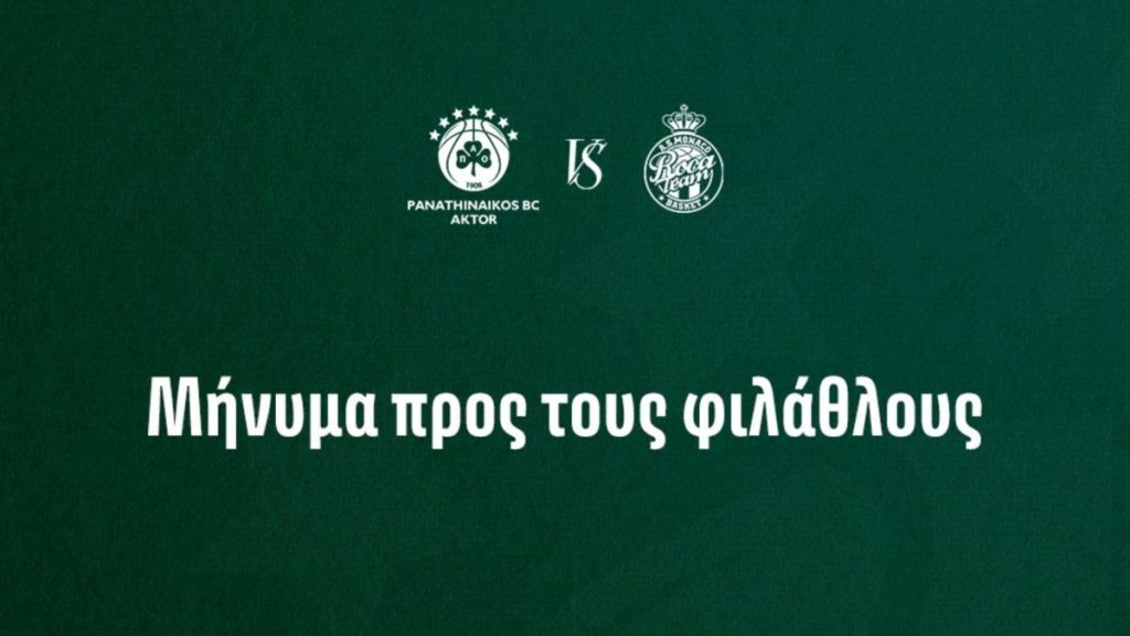 Η ΚΑΕ Παναθηναϊκός ΑΚΤOR καλεί τους φιλάθλους της να βρεθούν από νωρίς στο Telekom Center Athens, να ζήσουν μία ακόμα μοναδική εμπειρία και να στηρίξουν την ομάδα απέναντι στην AS Monaco, όπως μόνο αυτοί ξέρουν, σε μία ακόμη sold out αναμέτρηση στο σπίτι μας.