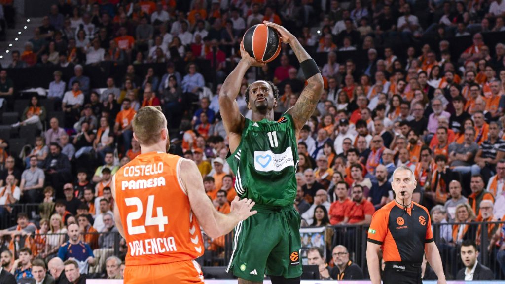 Ο Παναθηναϊκός από το τρίτο δεκάλεπτο έκανε το 80-71 τρέχοντας σερί 15-0, μέχρι ο Ντε Λαρέα να μειώσει σε 80-74. Ο Ισπανός γκαρντ συνέχισε για το 80-77 με νέο τρίποντο, αλλά ο Γκραντ απάντησε με δικό τρίποντο για το 83-77 στα πρώτα τρία λεπτά της 4ης περιόδου. Το παιχνίδι είχε τρομερή ισορροπία, με τις βολές και τα λάθη να είναι στους ίδιους αριθμούς (15-15 βολές, 9-9 λάθη). Το σύνολο του Έργκιν Άταμαν βρήκε πολλές λύσεις για να σκοράρει, από τους Ναν, Σορτς και Όσμαν, όπου έφτασε στο +6 για το 90-84. Η Βαλένθια έκανε την τελική της αντεπίθεση στα τελευταία πέντε λεπτά, φέρνοντας το ματς στο 92-92, δυο λεπτά πριν την λήξη της αναμέτρησης, καθώς ο Παναθηναϊκός κόλλησε την επίθεση του. Ο Παναθηναϊκός είχε την ευκαιρία να κλείσει το ματς στο 95-95, μετά από άστοχο σουτ της Βαλένθια, οι “πράσινοι” πήραν το ριμπάουντ, αλλά το σουτ του Ναν βρήκε σίδερο και έτσι το ματς πήγε στην παράταση.