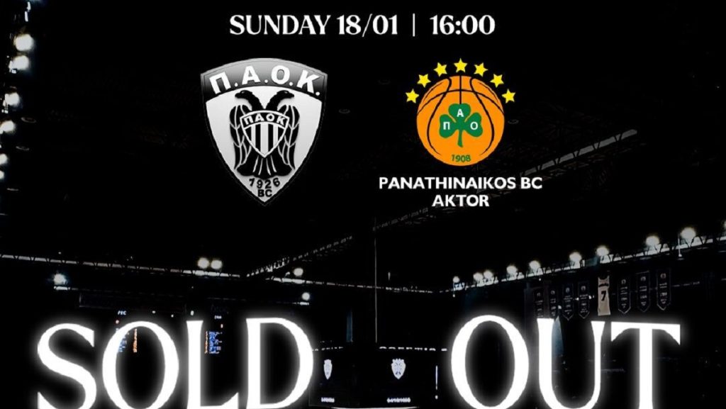 Ο ΠΑΟΚ υποδέχεται τον Παναθηναϊκό την προσεχή Κυριακή (18/1, 16:00, ΕΡΤ2 ΣΠΟΡ) στην Πυλαία για την 15η αγωνιστική της GBL και η "ασπρόμαυρη" ΚΑΕ έκανε γνωστό ότι εξαντλήθηκαν τα εισιτήρια για τη συγκεκριμένη αναμέτρηση.