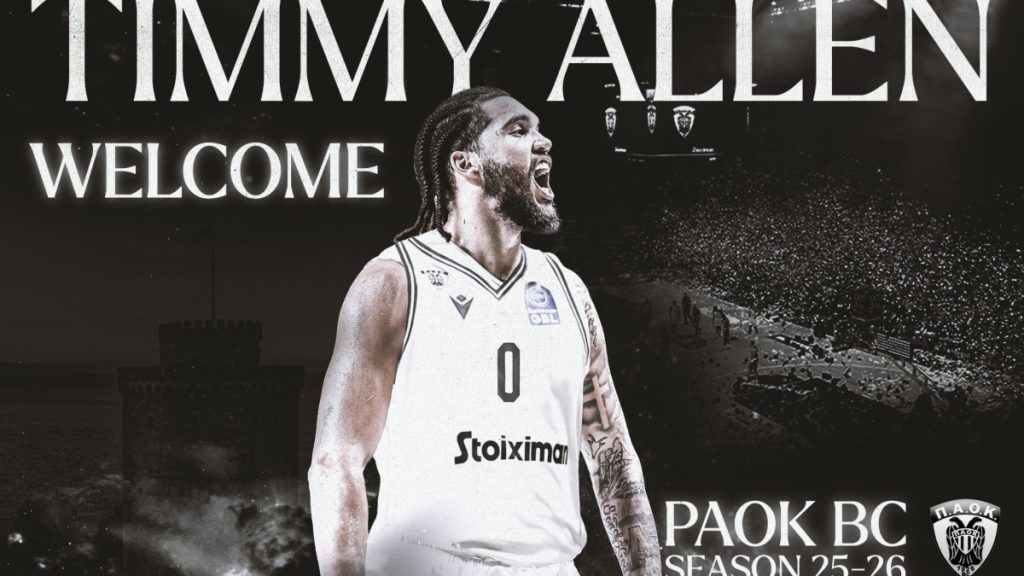 “Η ΚΑΕ ΠΑΟΚ ανακοινώνει τη συμφωνία με τον Αμερικανό καλαθοσφαιριστή Timmy Allen, ο οποίος θα ενισχύσει την προσπάθεια της ομάδας μας ως το τέλος της αγωνιστικής περιόδου 2025-26.