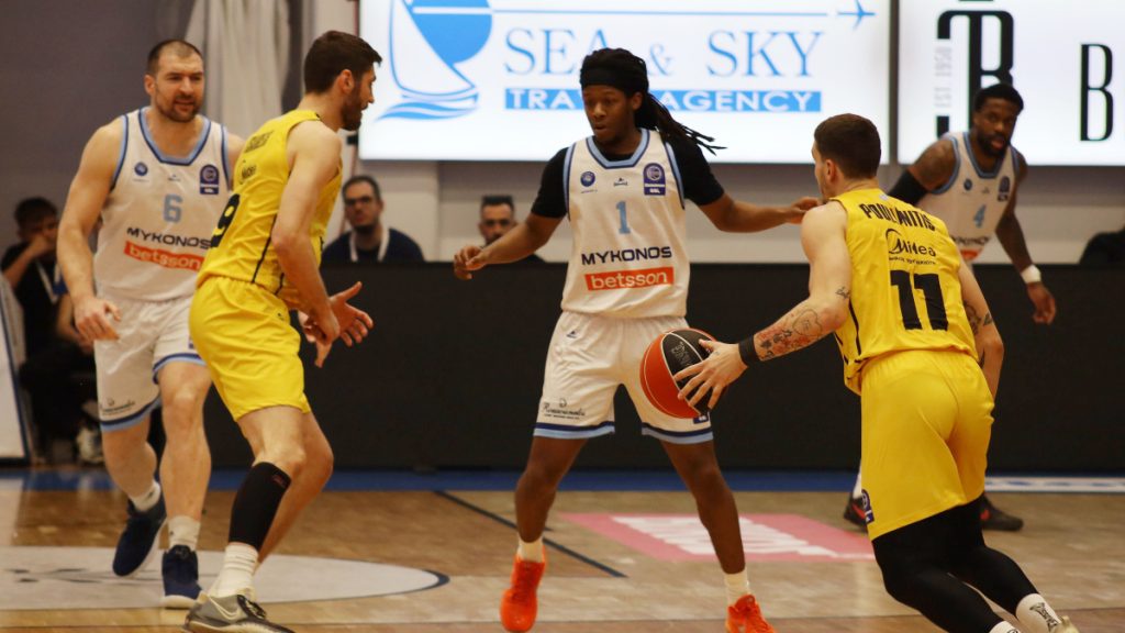 Στην πρώτη περίοδο της αναμέτρησης της Μυκόνου με τον Άρη, οι γηπεδούχοι γνώριζαν πως θα είχαν δύσκολο έργο για να περάσουν το εμπόδιο των “κίτρινων”, αλλά με δεδομένα τα πρώτα λεπτά, αυτό δεν φάνηκε. Στις πρώτες στιγμές του παιχνιδιού το σύνολο του Ζιάγκου, βρήκε τον δρόμος προς το καλάθι με τους Σκουλίδα από την περιφέρεια και με τον Μπριγκς κοντά στο καλάθι, για να πάρει το προβάδισμα με 11-7. Οι παίκτες του Ιγκόρ Μίλιτσιτς απάντησαν με τον Ντανίλο Άντζουσιτς και τον Πουλιανίτη, οι οποίοι έφεραν το ματς στην ισορροπία για το 14-14, αλλά εκεί και πάλι οι γηπεδούχοι είχαν τις λύσεις για να κλείσουν το δεκάλεπτο με προβάδισμα μόλις ενός πόντου και το 25-24.