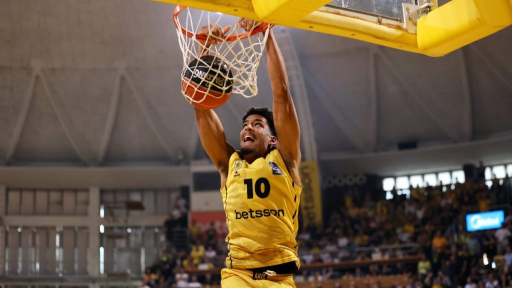 Οι φιλοξενούμενοι βρήκαν ρυθμό από την άμυνα στα πρώτα λεπτά, καθώς μονάχα ο Τζόουνς “ξέφυγε” από την ασφυκτική τους πίεση, φτάνοντας έτσι σε ένα πρόωρο 10-6 (5′). Ο Μποχωρίδης και ο Αντετοκούνμπο απάντησαν με έξι συνεχόμενους πόντους (12-12, 7′), ενώ ο Άρης ανέβασε ταχύτητα και έκλεισε την πρώτη περίοδο στο 19-15, με τον Φόρεστερ να “χτυπάει” στο αντίπαλο ζωγραφιστό. Οι “κυανέρυθροι” ισοφάρισαν γρήγορα στις αρχές του δευτέρου δεκαλέπτου (19-19, 12′), πριν ακολουθήσουν πέντε συνεχόμενοι των Θεσσαλονικέων για το 24-19 (14′). Στη συνέχεια, ο Λιούις απάντησε με επτά συνεχόμενους πόντους για το 26-24 των Νεοσμυρνιωτών, οι οποίοι πήγαν στα αποδυτήρια με ισοπαλία (31-31) και ένα… ορθάνοιχτο δεύτερο μέρος.