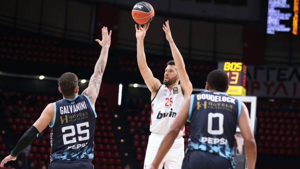 Οι Πρωταθλητές Ελλάδας επικράτησαν της μαχητικής ομάδας της Ρόδου στο ΣΕΦ με 100-86, χάρη σε μία ανεπανάληπτη εμφάνιση από τον ομογενή γκαρντ, ο οποίος "διέλυσε" όλα τα επιθετικά κοντέρ. Παράλληλα, ο Μόντε Μόρις πραγματοποίησε το ντεμπούτο του με την "ερυθρόλευκη" φανέλα.