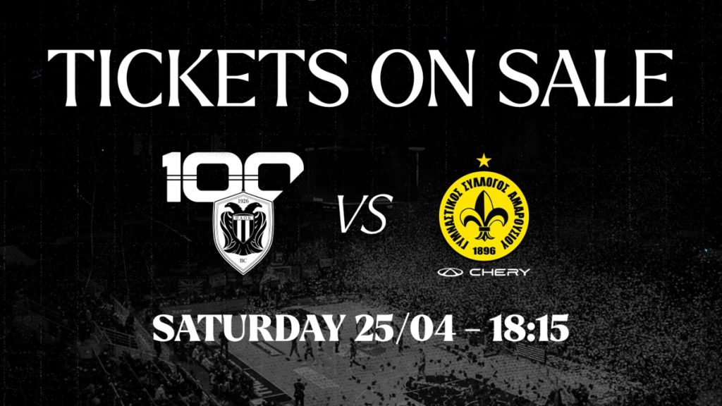“Η ΚΑΕ ΠΑΟΚ ανακοινώνει ό,τι ξεκίνησε η διάθεση των εισιτηρίων για τον αγώνα ΠΑΟΚ – Μαρούσι Chery που θα διεξαχθεί στο PAOK Sports Arena το Σάββατο (25/4) στις 18:15 για την 26η αγωνιστική της Stoiximan GBL.