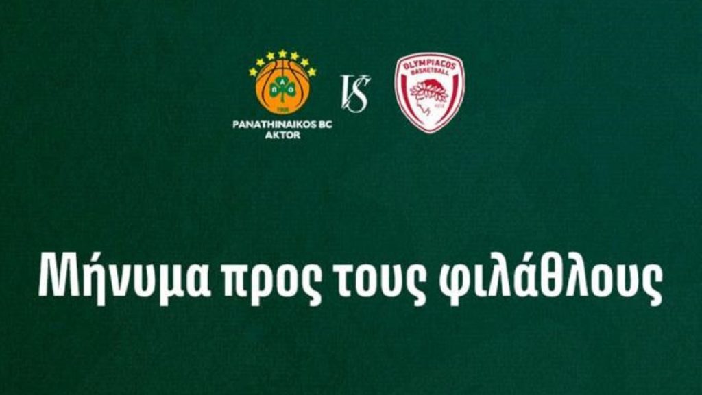 «Η ΚΑΕ Παναθηναϊκός AKTOR ενημερώνει το φίλαθλο κοινό εν όψει της αποψινής αναμέτρησης (30/03, 19:00) με τον Ολυμπιακό για την 23η αγωνιστική της Stoiximan GBL.