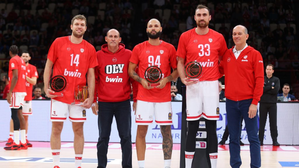 Σάσα Βεζένκοφ, Εβάν Φουρνιέ και Νίκολα Μιλουτίνοφ συμπεριλήφθηκαν στην κορυφαία 5άδα της περασμένης σεζόν στην GBL και παρέλαβαν τα βραβεία τους πριν την έναρξη του αγώνα του Ολυμπιακού με τον Πανιώνιο στο ΣΕΦ, δια χειρός των προέδρων της ομάδας, Γιώργου και Παναγιώτη Αγγελόπουλου.
