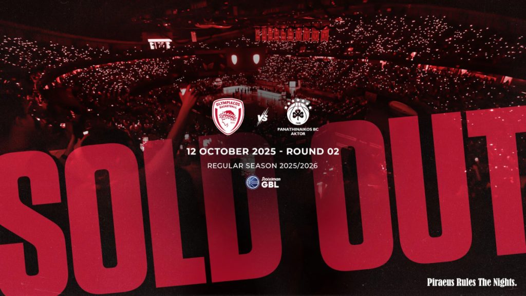 Η ΚΑΕ Ολυμπιακός ενημερώνει τους φιλάθλους της ότι τα εισιτήρια για την αναμέτρηση με τον Παναθηναϊκό, στο πλαίσιο της Stoiximan Basket League, που θα διεξαχθεί την Κυριακή 12 Οκτωβρίου 2025 και ώρα 19:00, εξαντλήθηκαν!