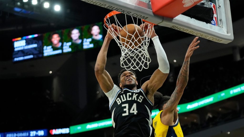 Ο Γιάννης Αντετοκούνμπο χόρεψε την άμυνα των Πέισερς και κάρφωσε με μανία στο καλάθι τους στην καλύτερη φάση της βραδιάς, με τον Greek Freak να συμβάλει τα μέγιστα στη νίκη των “ελαφιών” επί τους Πέισερς με 134-123.