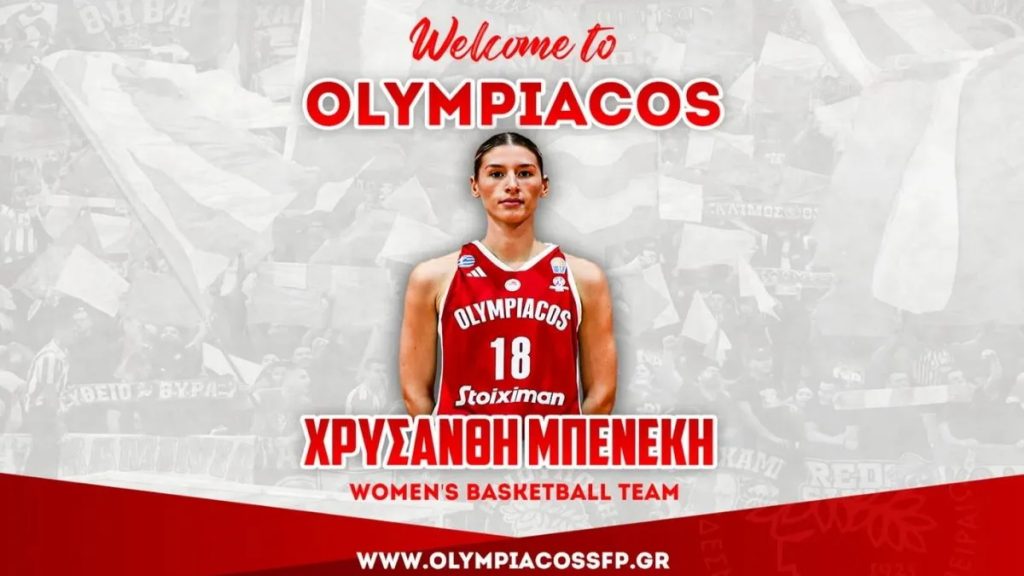 «Ο ΟΛΥΜΠΙΑΚΟΣ Σ.Φ.Π. ανακοινώνει την έναρξη της συνεργασίας του με την Χρυσάνθη Μπενέκη. Η 24χρονη φόργουορντ (ημ. γέννησης 28/8/2001, 1,86μ.) υπέγραψε το νέο της συμβόλαιο και εντάσσεται στο ρόστερ της ομάδας μπάσκετ Γυναικών του συλλόγου.