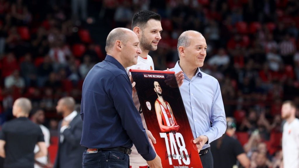 Για το ιστορικό αυτό επίτευγμα, ο αρχηγός του Ολυμπιακού τιμήθηκε από τους προέδρους της ΚΑΕ, Παναγιώτη και Γιώργο Αγγελόπουλο, πριν την έναρξη του παιχνιδιού με την Dubai BC στο ΣΕΦ.