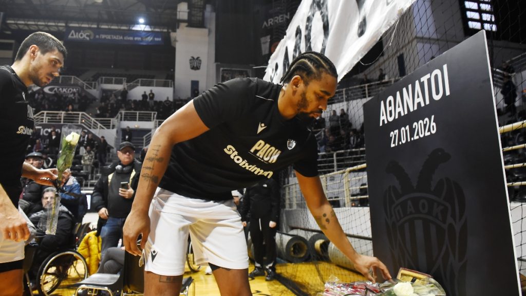 Ο ΠΑΟΚ αγωνίζεται με την πορτογαλική ομάδα για την πέμπτη στροφή της φάσης των 16" του Europe Cup και πριν το τζάμπολ οι παίκτες και των ομάδων άφησαν λουλούδια και στεφάνια για τα εφτά θύματα του τροχαίου δυστυχήματος τη Ρουμανία.