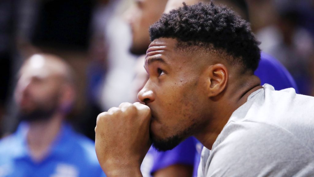 Ο Γιάννης Αντετοκούνμπο βρίσκεται πάντοτε στο πλευρό της “Γαλανόλευκης”, όπως έγινε και στο φιλικό της Ελλάδας με το Μαυροβούνιο το απόγευμα της Πέμπτης (14/8) στη Θεσσαλονίκη. Ο αστέρας των Μπακς κάθεται στον πάγκο, δίπλα στους συμπαίκτες του και παρακολουθεί το παιχνίδι.
