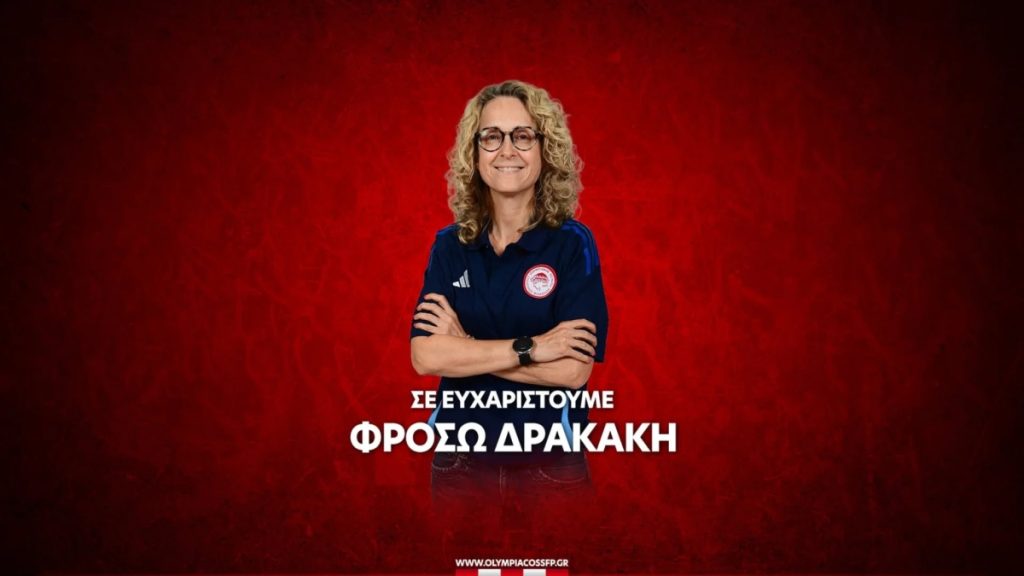 «O OΛYMΠIAKOΣ Σ.Φ.Π. ανακοινώνει την ολοκλήρωση της συνεργασίας του με την προπονήτρια Φρόσω Δρακάκη.