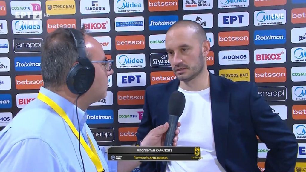 Ελάχιστες λέξεις είχε να πει ο Μπόγκνταν Κάραϊτσιτς στην κάμερα της ΕΡΤ μετά το τέλος του παιχνιδιού του Άρη με τον Κολοσσό Ρόδου.