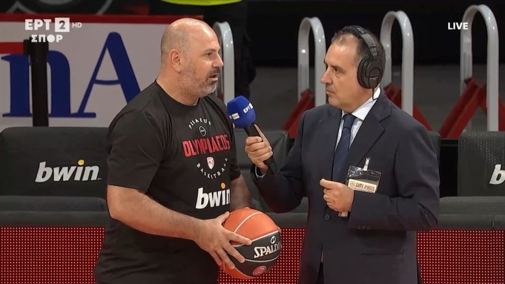 Ο συνεργάτης του Γιώργου Μπαρτζώκα, Γιώργος Μποζίκας, παραχώρησε δηλώσεις στην κάμερα της ΕΡΤ λίγο πριν την έναρξη του μεγάλου ντέρμπι του Ολυμπιακού με τον Παναθηναϊκό (12/10, 19:00, ΕΡΤ2 ΣΠΟΡ).