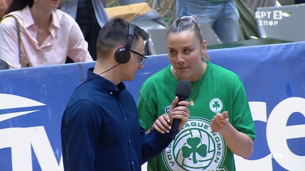 Η πασαδόρος του Παναθηναϊκού μίλησε στη Δημόσια Τηλεόραση μετά το φινάλε του τρίτου τελικού της Volley League γυναικών κόντρα στον ΖΑΟΝ στο "Κ.Γ. Μετς".