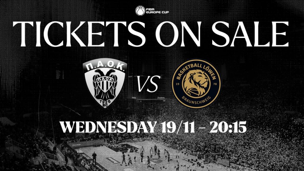 «Η ΚΑΕ ΠΑΟΚ ανακοινώνει ό,τι ξεκίνησε η διάθεση των εισιτηρίων για τον αγώνα ΠΑΟΚ – Braunschweig που θα διεξαχθεί στο PAOK Sports Arena την Τετάρτη (19/11) στις 20:15 για την 6η αγωνιστική της κανονικής περιόδου του FIBA Europe Cup.