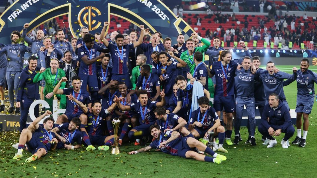 Στο «Ahmad bin Ali Stadium» της πόλης Αλ-Ραγιάν του Κατάρ η Παρί Σεν Ζερμέν μπήκε πιο δυνατά στον αγώνα και είχε ένα ακυρωθέν γκολ στο 9’ του Φαμπιάν Ρουίθ για οφσάιντ του Ισπανού επιθετικού. Οι Παριζιάνοι άνοιξαν το σκορ στο 38’ με κοντινή προβολή του Κβαρατσκέλια έπειτα από συνεργασία του με τον Ντουέ.