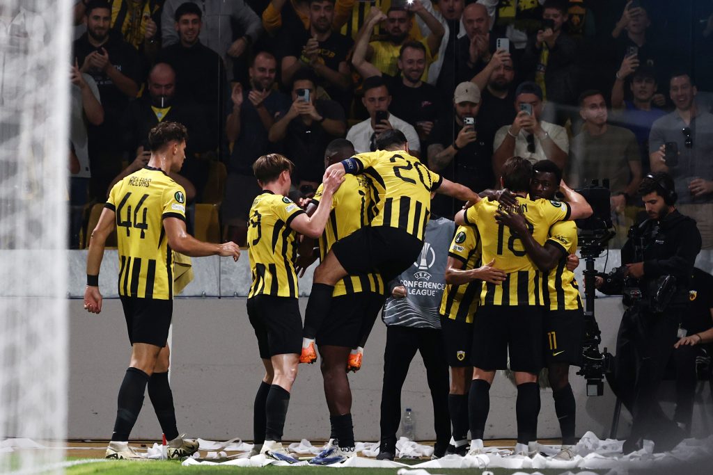 Στην πρώτη της καλή στιγμή στο δεύτερο ημίχρονο η ΑΕΚ πέτυχε και τέταρτο τέρμα. Ο Μάνταλος έδωσε ωραία κάθετη στον Πιερό, με τον επιθετικό της «Ένωσης» να πλασάρει μέσα από την περιοχή, με την μπάλα να σταματά στο δοκάρι. Ο Μάριν πήρε το «ριμπάουντ» και με γυριστό σκορ έγραψε το 4-0 στο 55’. Στο 65΄ο Κουτέσα με το που πέρασε στο παιχνίδι δοκίμασε ένα δυνατό σουτ από τα αριστερά, με τον Μίτοφ να απομακρύνει με δυσκολία. Μέσα σε δύο λεπτά οι Σκωτσέζοι απείλησαν την ΑΕΚ δύο φορές. Αρχικά με τον Λάζετιτς και στην συνέχεια με τον Γένγκι, αλλά ο Στρακόσα αποσόβησε τον κίνδυνο και κράτησε το μηδέν για την ομάδα του. Η ΑΕΚ κατάφερε να σημειώσει και πέμπτο τέρμα. Ο Γκατσίνοβιτς κινήθηκε υπέροχα στην περιοχή και μοίρασε στον Λούκα Γιόβιτς. Εκείνος απέφυγε ωραία τον Μίτοφ και με ωραίο τελείωμα έστειλε την μπάλα στα δίχτυα, γράφοντας το 5-0. Η ΑΕΚ δεν άφηνε το… πόδι από το γκάζι. Ο Κουτέσα έφυγε στην πλάτη της άμυνας, έκανε φοβερό κοντρόλ με τακουνάκι φέρνοντας την μπάλα μπροστά του και με άψογο πλασέ έγραψε το τελικό 6-0. Στο 90′ η ΑΕΚ σπατάλησε ακόμα μία ευκαιρία. Ο Βίντα ξανά πήρε την μπάλα μέσα στην περιοχή και με κεφαλιά έστειλε την μπάλα στο δοκάρι.