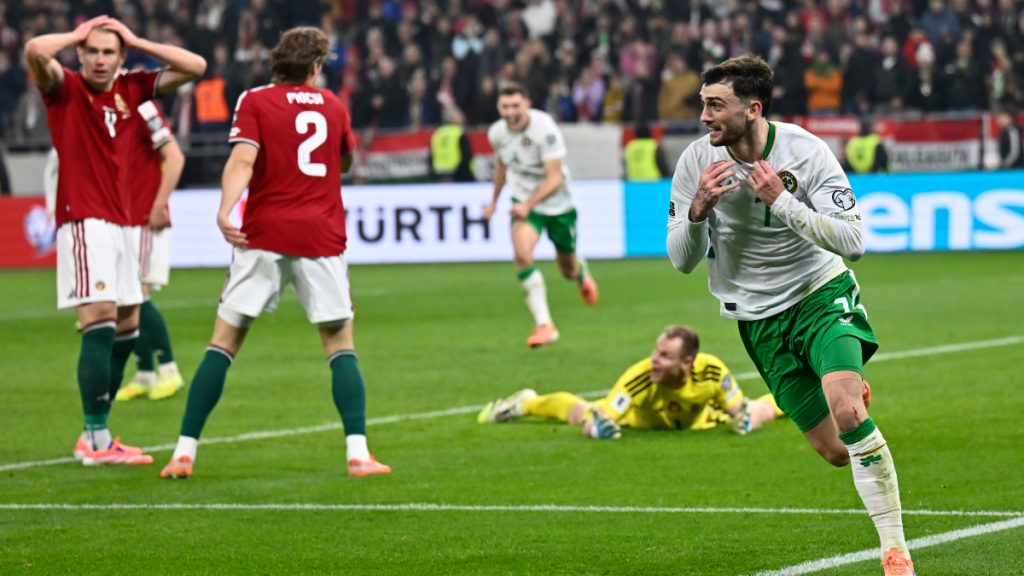 Στο άλλο παιχνίδι του ομίλου ανατράπηκαν όλα στο τέλος. Η Ουγγαρία κράταγε με το 2-2 μέχρι το 90+6′ την πρόκριση της στα μπαράζ, ωστόσο ο Πάροτ στην εκπνοή χάρισε τη νίκη εκτός έδρας στην Ιρλανδία με 3-2 και θα διεκδικήσει την είσοδο της στην τελική φάση του Παγκοσμίου Κυπέλλου. Οι γηπεδούχοι μπήκαν καλύτερα στην αναμέτρηση και πήραν το προβάδισμα με τον Λούκατς στο 3′. Οι Ιρλανδοί απάντησαν με εύστοχη εκτέλεση πέναλτι του Πάροτ στο 15′, αλλά οι Ούγγροι πήραν εκ νέου κεφάλι στο σκορ με τον Βάργκα στο 37ο λεπτό που διαμόρφωσε το 2-1. Στο δεύτερο μέρος οι φιλοξενούμενοι οι φιλοξενούμενοι δεν παράτησαν το ματς και στο φινάλε κατάφεραν να πετύχουν μια επική ανατροπή. Στο 80′ ο Πάροτ έφερε το ματς σε ισορροπία, ενώ στο 90+6′ δευτερόλεπτα πριν την λήξη, ο ίδιος παίκτης σημείωσε ένα τέρμα από χρυσάφι διαμορφώνοντας το τελικό 3-2, που έδωσε στην Ιρλανδία την πρόκριση στα μπαράζ του Παγκοσμίου Κυπέλλου ρίχνοντας στο καναβάτσο την Ουγγαρία.