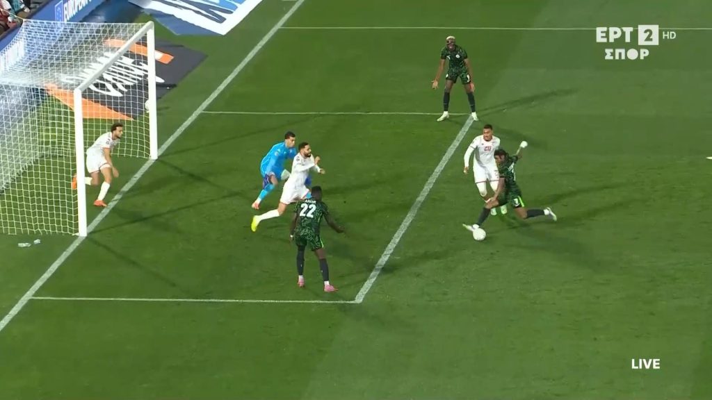 Η ομάδα του Έρικ Τσέλε έκανε τα εύκολα δύσκολα, παρά ταύτα, πέτυχε το 2Χ2 στον Γ’ όμιλο, επικρατώντας με 3-2 της Τυνησίας (ο Οσιμέν στο 44′ και ο Εντιντί στο 50′ έδωσαν προβάδισμα δύο τερμάτων στους Super Eagles), η οποία δεν τα παράτησε και ξαναμπήκε στο ματς στα τελευταία λεπτά. Παρά την ήττα της, πάντως, παρέμεινε στη δεύτερη θέση του γκρουπ, μετά το 1-1 που προηγήθηκε ανάμεσα στην Ουγκάντα και στην Τανζανία.