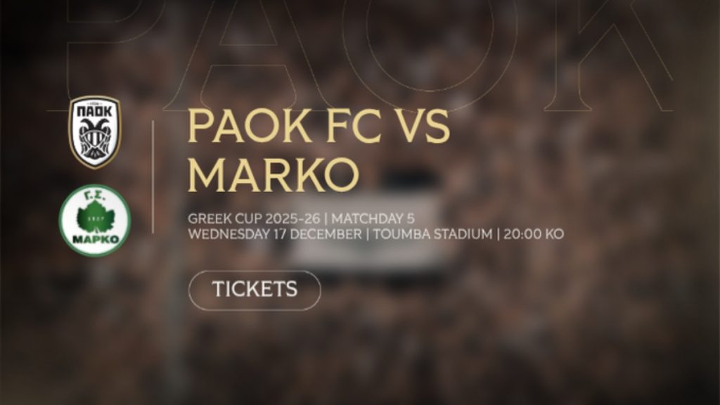 Με επίσημη ανακοίνωση, η ΠΑΕ ΠΑΟΚ ενημέρωσε ότι ξεκίνησε από σήμερα το πρωί (15/12) η διάθεση των εισιτηρίων για την εντός έδρας αναμέτρηση Κυπέλλου απέναντι στη Μαρκό.