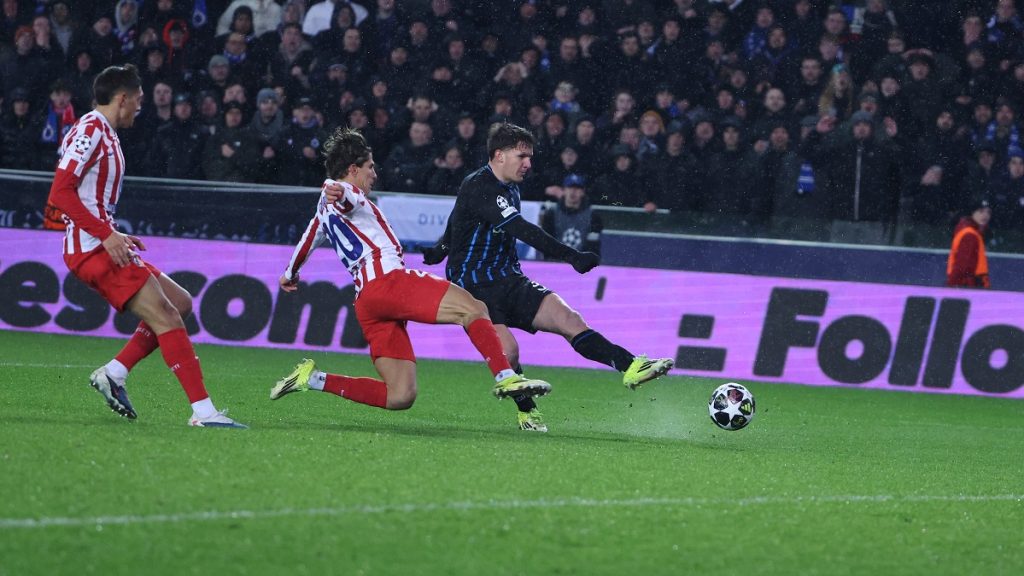Οι “ροχιμπλάνκος” βρέθηκαν με προβάδισμα δύο τερμάτων στο ημίχρονο του αγώνα στο Βέλγιο. Η ομάδα του Σιμεόνε άνοιξε το σκορ στο 8′ με εύστοχο χτύπημα πέναλτι του Άλβαρες και στο 4ο λεπτό των καθυστερήσεων του πρώτου μέρους, ήρθε το 2-0 από τον Λούκμαν. Παρ’ όλα αυτά, η Μπριζ έβγαλε αντίδραση με δύο γρήγορα γκολ στο δεύτερο ημίχρονο. Ο Ονιεντίκα και ο Τρεσόλντι βρήκαν δίχτυα στο 52′ και το 60′ αντίστοιχα, έφεραν το ματς στην ισοπαλία. Η Ατλέτικο ξαναπήρε το προβάδισμα με αυτογκόλ του Ορντόνιες στο 79′, αλλά δέκα λεπτά αργότερα, ο Χρήστος Τζόλης νίκησε τον Όμπλακ και διαμόρφωσε το 3-3, που ήταν το τελικό σκορ της αναμέτρησης.