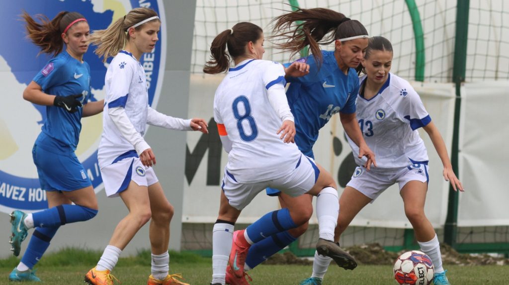 Οι γηπεδούχες είχαν δοκάρι στο 3΄ σε σέντρα σουτ της Πάλιεβιτς από αριστερά, όμως ήταν η Ελλάδα που είχε την πρώτη κλασική ευκαιρία, όταν η Τζούρτζεβιτς στο 11΄ βρέθηκε από λάθος των Βόσνιων σε καλή θέση αλλά πλάγια δεξιά και δεν κατάφερε να σκοράρει.