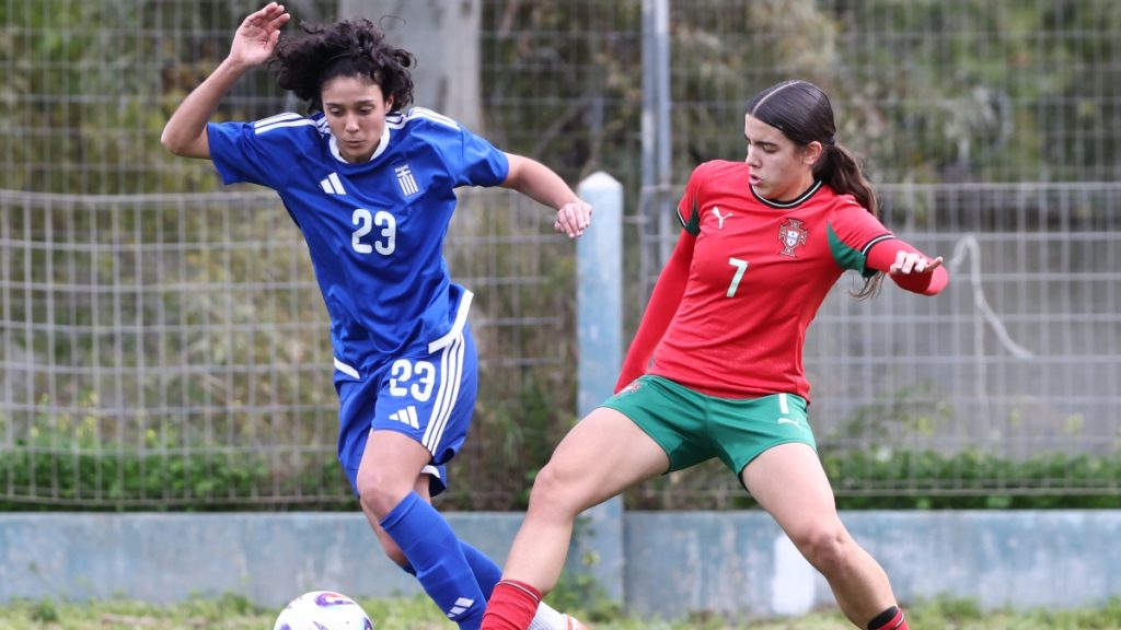 Η Πορτογαλία ξεκίνησε καλύτερα το παιχνίδι και ευτύχησε να προηγηθεί στο 18′, όταν η Σα έκανε το γύρισμα στη μικρή περιοχή, η μπάλα κόντραρε στα πόδια της Ροπόκη και κατέληξε στα δίχτυα της Κουβεντάρη. Οι ποδοσφαιρίστριες της κας Σαββίδου ισορρόπησαν τον ρυθμό του αγώνα και έως τη λήξη του ημιχρόνου δεν απειλήθηκαν, ενώ παράλληλα δημιούργησαν προϋποθέσεις για την ισοφάριση, με καλύτερη ευκαιρία το σουτ της Σχορτσιανίτη στο 33′ που μπλόκαρε στη γωνία της η Μασέδο.