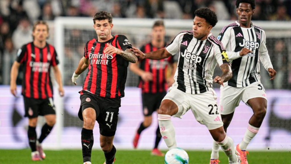 Χαμηλός ρυθμός στο ξεκίνημα του αγώνα, με τις ομάδες να παρουσιάζονται ιδιαίτερα επιφυλακτικές. Παιχνίδι κέντρου με λιγοστές καλές στιγμές. Σέντρα του Καλούλου από δεξιά για τη Γιουβέντους, ο Ντέιβιντ βρέθηκε σε θέση βολής, ωστόσο δεν κατάφερε να ολοκληρώσει προσπάθεια, αφού γλίστρησε, ενώ σε μπαλιά του Πάβλοβιτς από τα αριστερά, ο Χιμένεζ σημάδεψε ψηλά με το κεφάλι, σε ό,τι καλύτερο είχε να επιδείξει η Μίλαν στο πρώτο ημίχρονο.