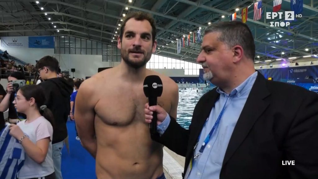 Οι δύο πολίστες παραχώρησαν δηλώσεις στην κάμερα της Δημόσιας Τηλεόρασης, λίγο μετά το φινάλε του τελευταίου αγώνα για την προκριματική φάση του Παγκοσμίου Κυπέλλου υδατοσφαίρισης.