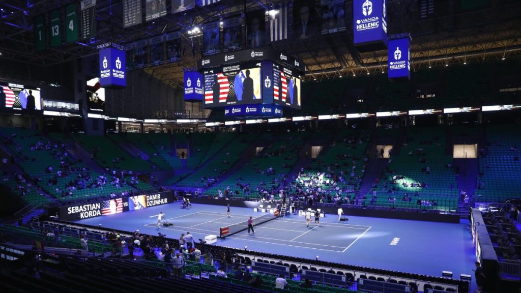 Ο Νόβακ Τζόκοβιτς αντιμετωπίζει τον Αλεχάντρο Ταμπίλο στο Telekom Center Athens, για τον πρώτο γύρο του Hellenic Championship. Ο θρυλικός Σέρβος αποθεώθηκε από το κοινό που συγκεντρώθηκε στις εξέδρες του κλειστού για να παρακολουθήσει τον 38χρονο στον πρώτο του αγώνα επί ελληνικού εδάφους.