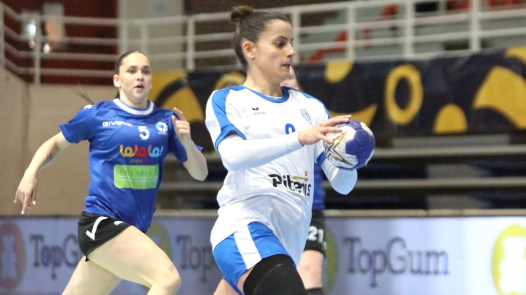 Οι δύο ομάδες συμβάδιζαν στο σκορ στο ξεκίνημα του ματς, με το Ισραήλ να πετυχαίνει πρώτο γκολ και την εθνική να «απαντάει». Χάρη σε τέρματα των Στουγιαννίδου και Ζενέλι, η ελληνική ομάδα πήρε για πρώτη φορά προβάδισμα στον αγώνα στο 10΄ (5-4), ενώ με σερί 3-0 από γκολ των Μάγδας Κεπεσίδου, Σαμολαδά και Ανδρίτσου, η – τυπικά φιλοξενούμενη – εθνική προηγήθηκε 9-6 στο 18΄. Παρότι το Ισραήλ μείωσε σε 11-10 στο 25΄, οι παίκτριες του Μενέλαου Δανήλου ανέκτησαν προβάδισμα τριών τερμάτων (13-10) στο 27΄, με τη Βακράτ να διαμορφώνει το 14-12, 37 δευτερόλεπτα πριν το τέλος του α΄ μέρους. Αξίζει να σημειωθεί ότι η Ανδρίτσου μετρούσε επτά γκολ στο πρώτο… μισό του ματς, ενώ η Βακράτ είχε πετύχει τα οκτώ από τα 12 τέρματα του Ισραήλ.