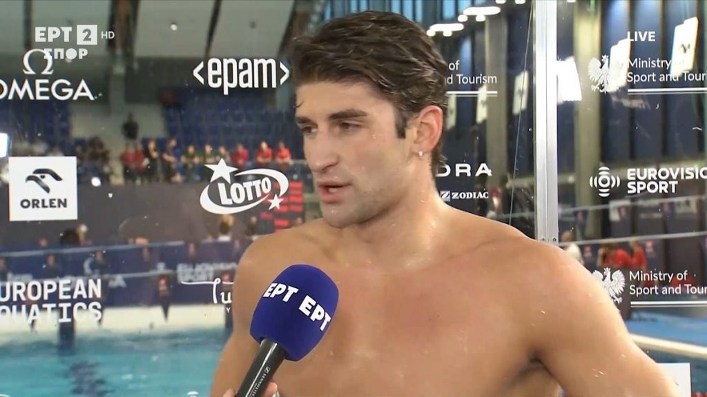 Ο Δημήτρης Μάρκος μίλησε στην κάμερα της δημόσιας τηλεόρασης, λίγο μετά την κούρσα του στα προκριματικά των 400μ. ελεύθερο του Ευρωπαϊκού Πρωταθλήματος κολύμβησης σε 25άρα πισίνα.